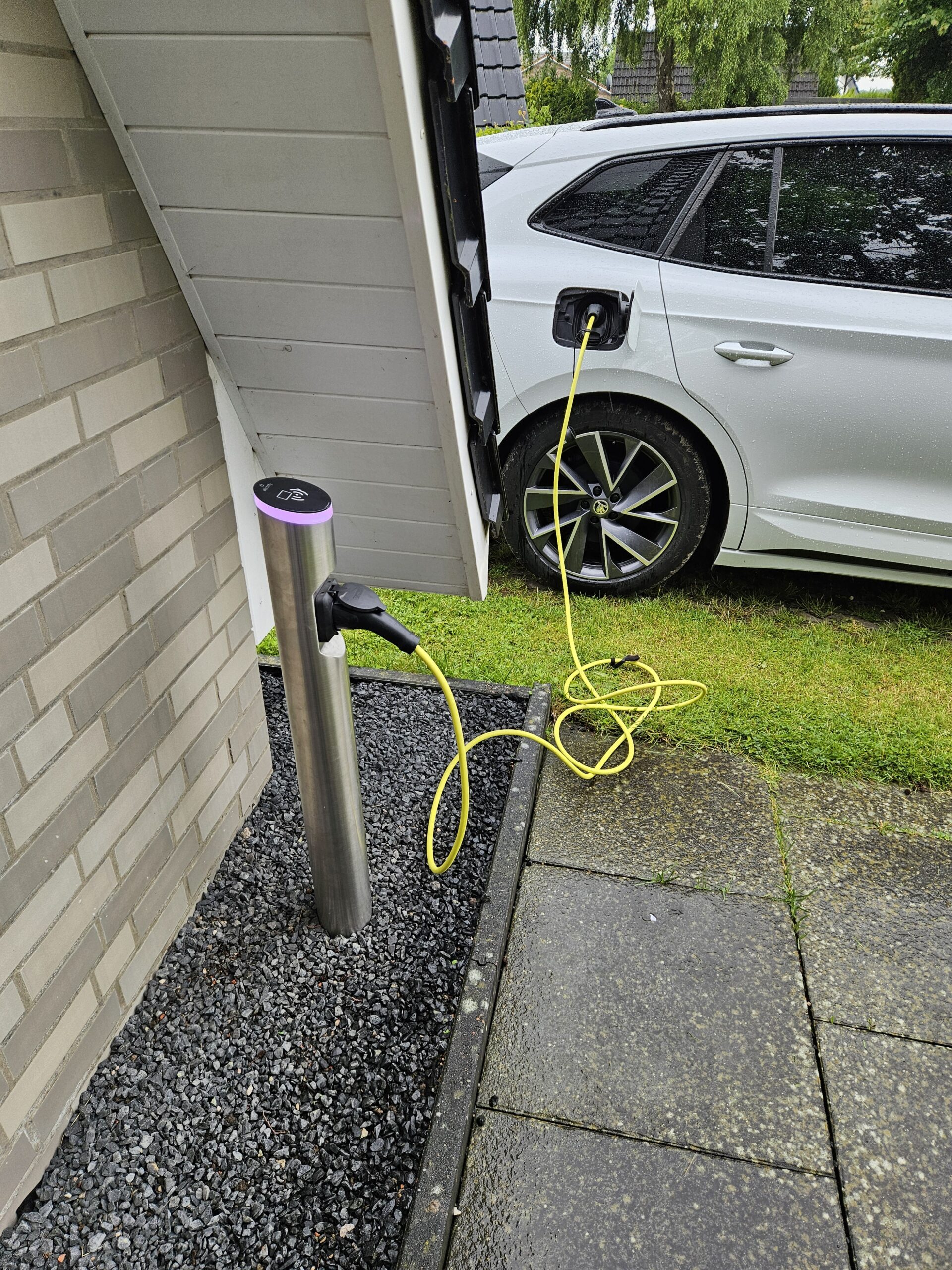 Auf dem Bild synchronisiert sich die Wallbox mit dem Auto